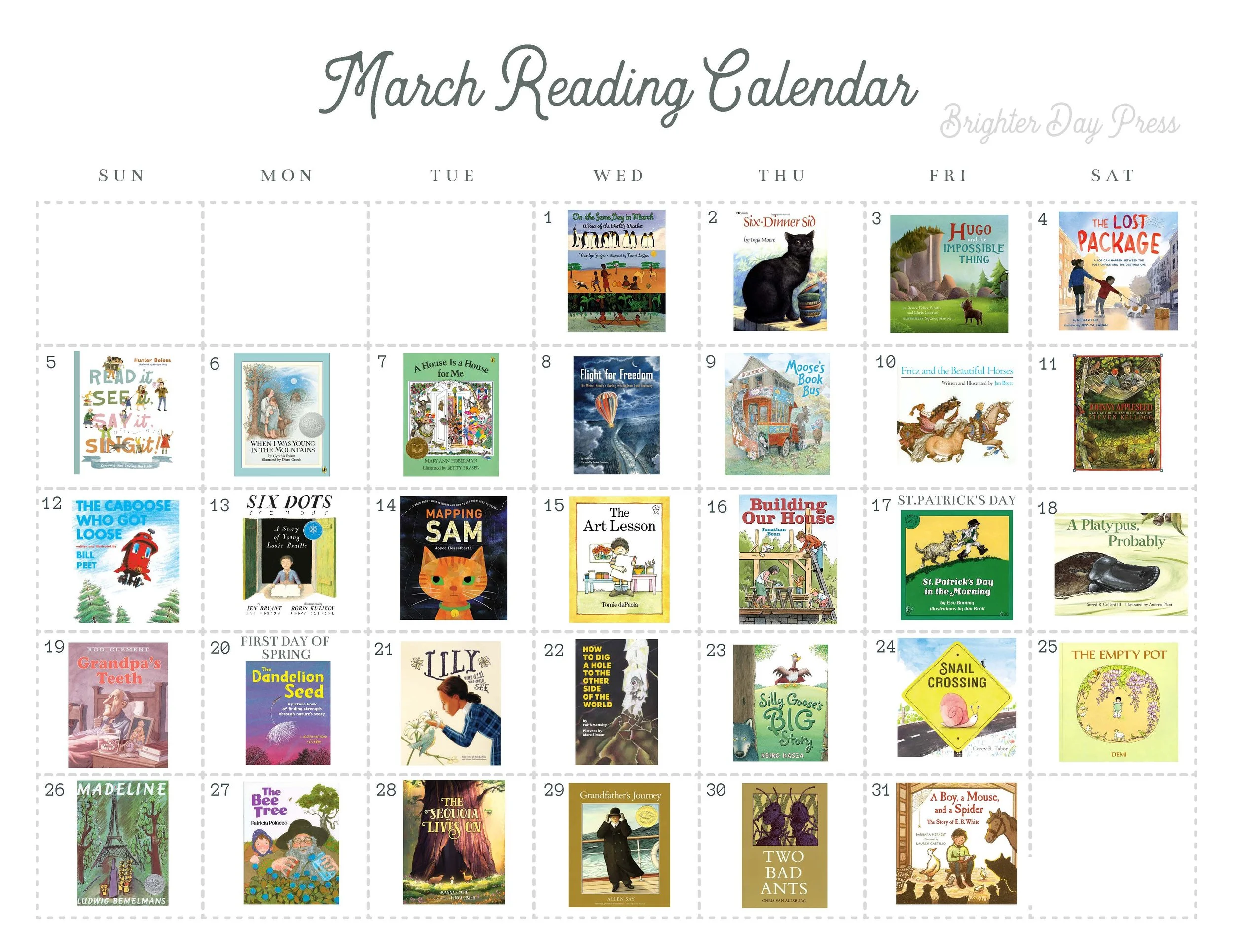 Brighter Day Press (click here for more information) has provided the following March reading challenge book list! Take the challenge and read each book for each day in March!